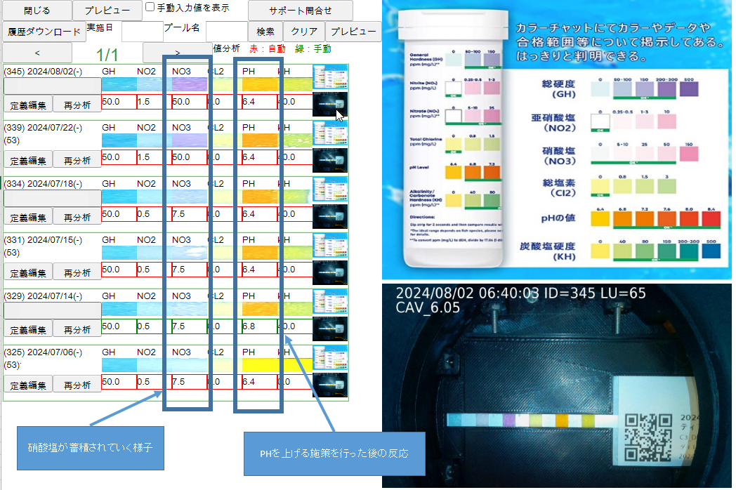 理由は、約4年前から養殖研究の中で、この安価な試験紙を使い続けており、私自身がさまざまな試験を行う中で水質の変化と結果がほぼ同じであることを知っていたからです。