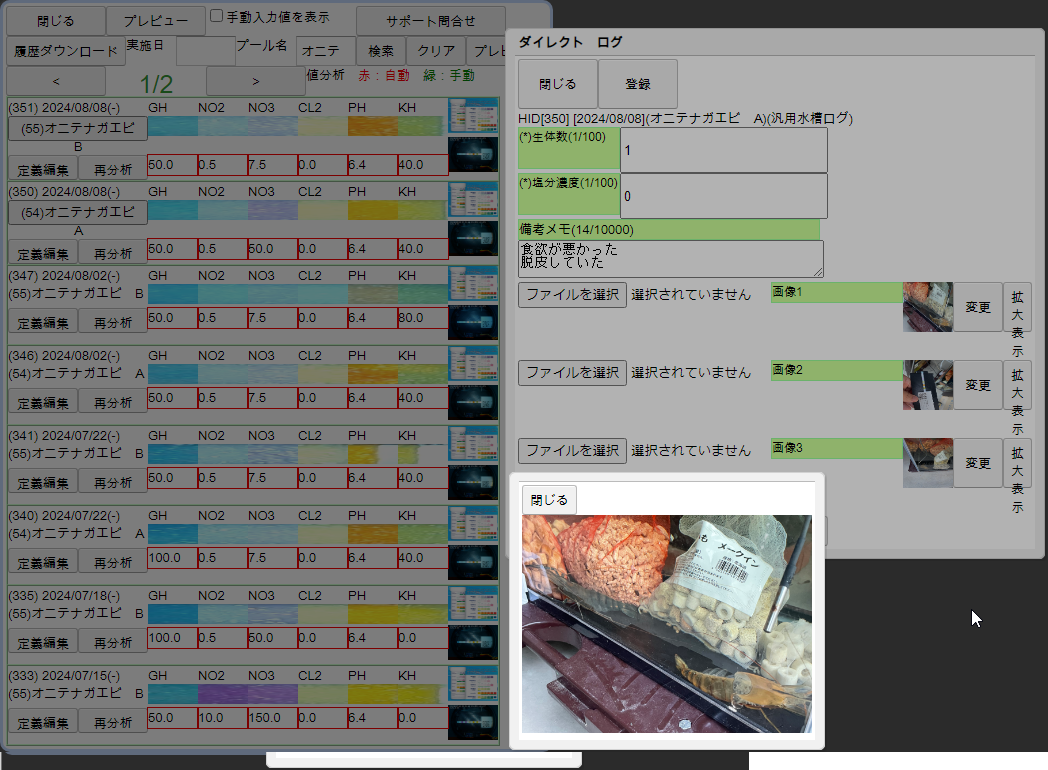 ・独自に調合した飼料を、個別で実験して成長や水質悪化を確認したい・・